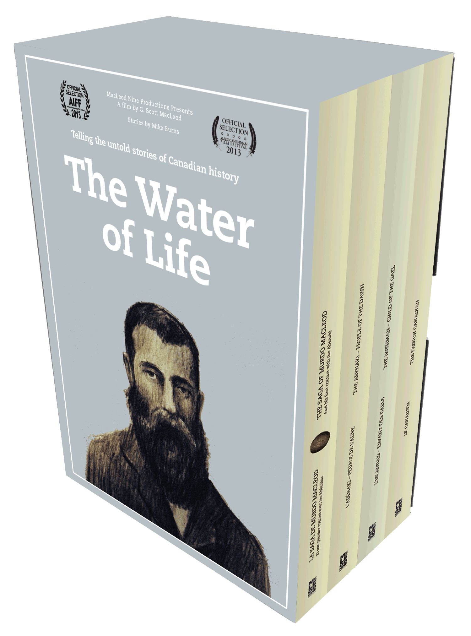 A collaboration between award-winning Montreal visual artist and filmmaker G. Scott MacLeod and internationally celebrated storyteller and writer Mike Burns, these richly detailed and deeply moving tales of personal struggle and survival, told by the Abenaki, Scottish, Irish and French members of the crew, make up the four compelling films in The Water of Life film series.